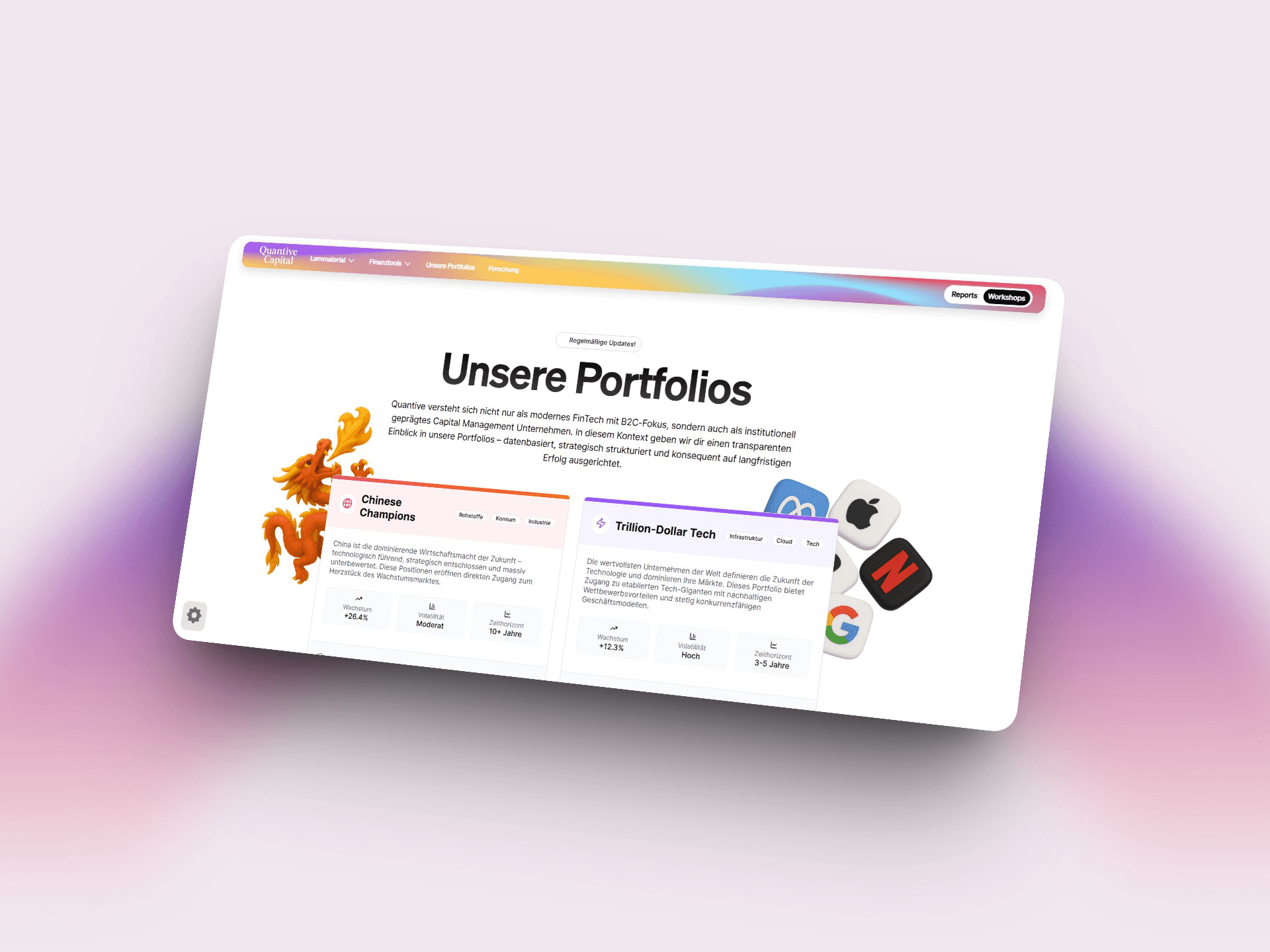 Kombination aus optisch ansprechender Storefront und komplexen Finanztools in einem Frontend